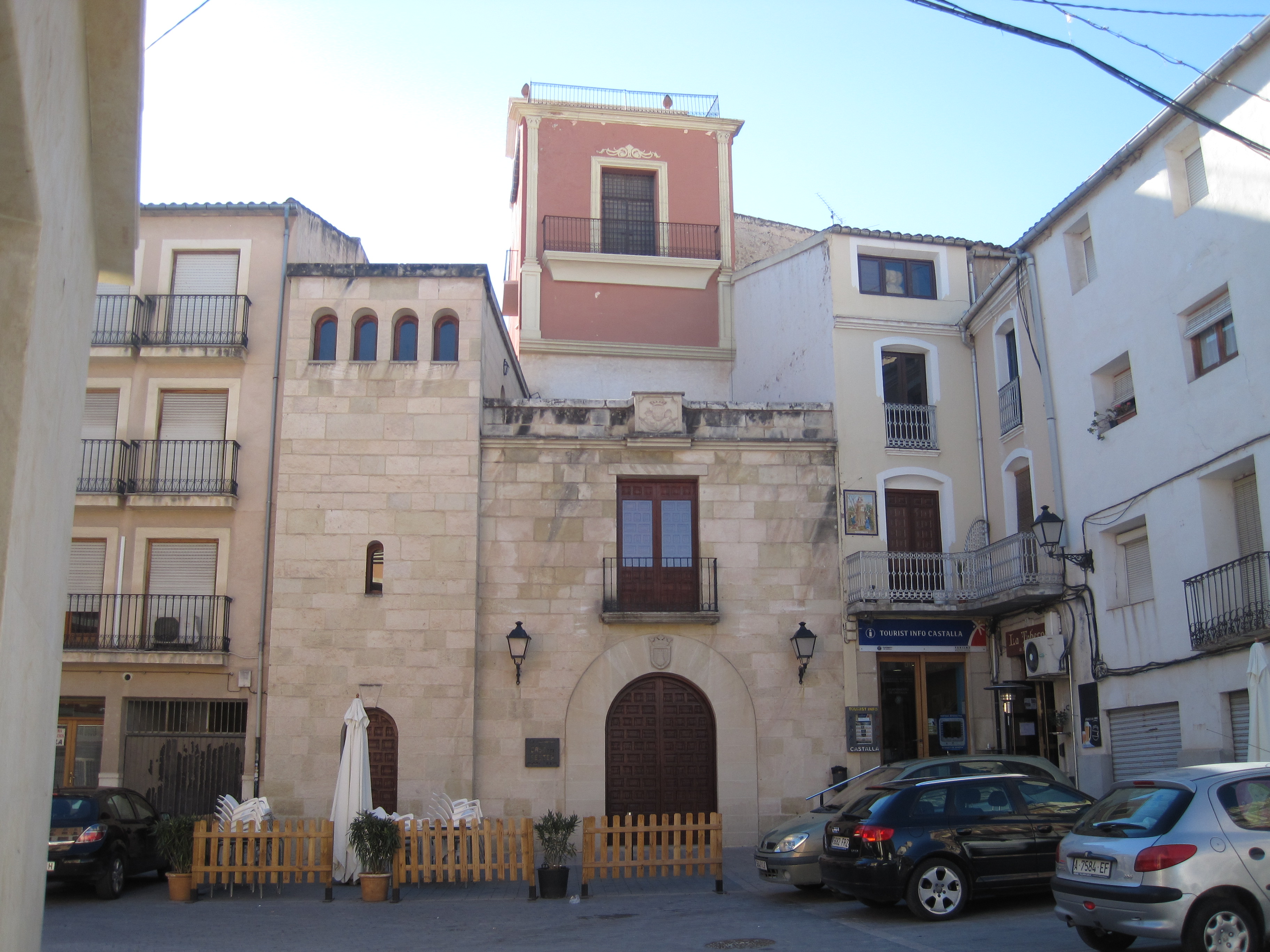 La cronologia de la seua construcció cal situar-la a mitjan segle XVII. Per tant és un edifici amb característiques de les construccions civils renaixentistes valencianes: En el seu interior, cal destacar en la sala de plens les pintures de l'artista local Eliseo, amb diversos quadres amb escenes de la vida quotidiana de tradicions i costums de Castalla, i una reproducció del quadre del pintor Langlois "Batalla de Castalla" en referència a les batalles napoleòniques que es van produir en la localitat en 1812-1813.